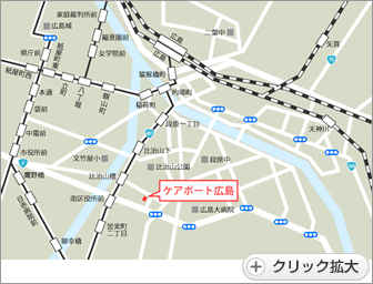 目の前に広がる緑豊かな比治山公園。安心と快適,やすらぎとふれあいの介護施設です。