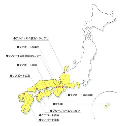 西日本に拡がる介護施設のネットワークが、地域の利用者のニーズに適した充実の施設と安心で快適な各種の介護サービスを提供します。