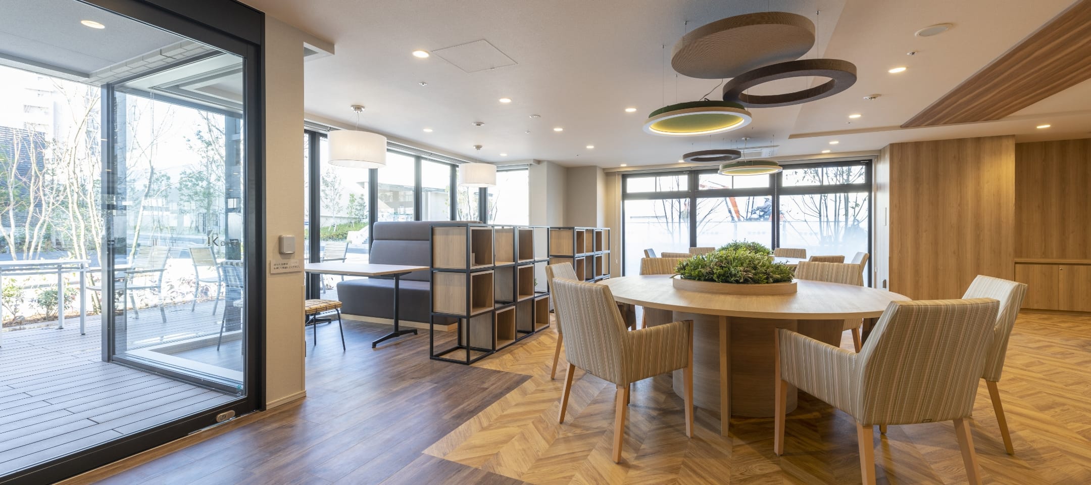 併せて、入居者様にとって少しでも過ごしやすい空間をご提供できるよう、館内はウッド調の温かみのある色味とマンションのような落ち着いたデザインで統一し、コンシェルジュカウンターやラウンジ、レストラン・カフェ等を設置しました。お部屋はスイート(自立型)・プラチナ(介護型)の2種類のタイプを用意し、お身体の状態に合わせて自由に「住まい」を選択できるように工夫しました。