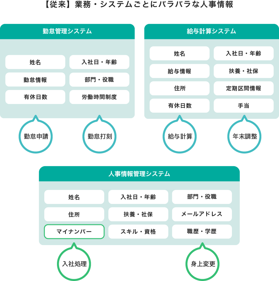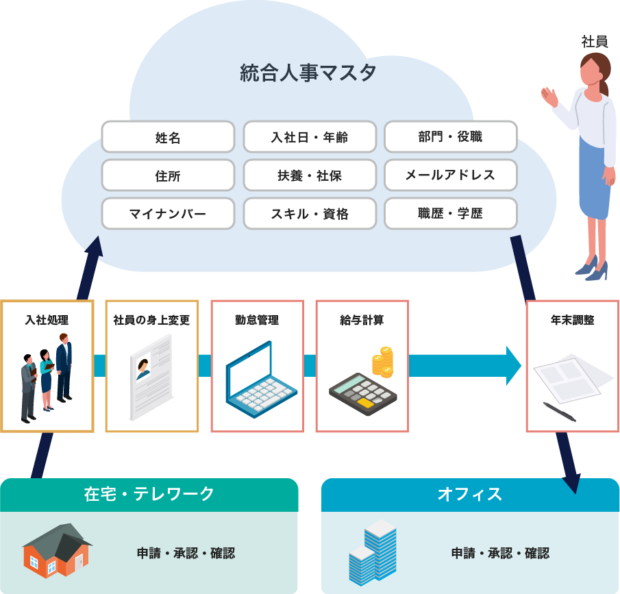 ヒトの情報を一元化することで、効率の良くミスのない人事労務業務をサポートします。
