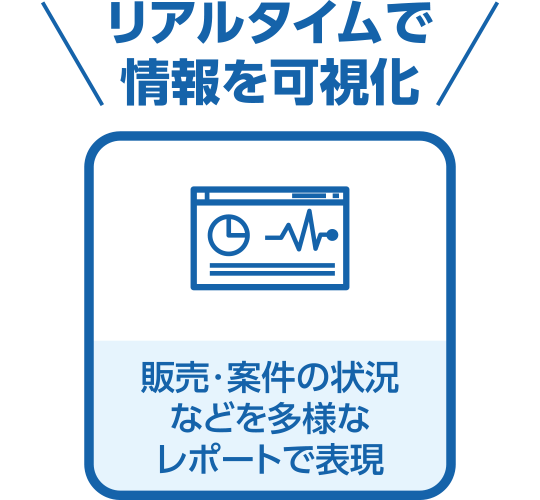 顧客情報や案件情報、売上情報、など必要なあらゆる情報を管理、リアルタイムに共有できます。